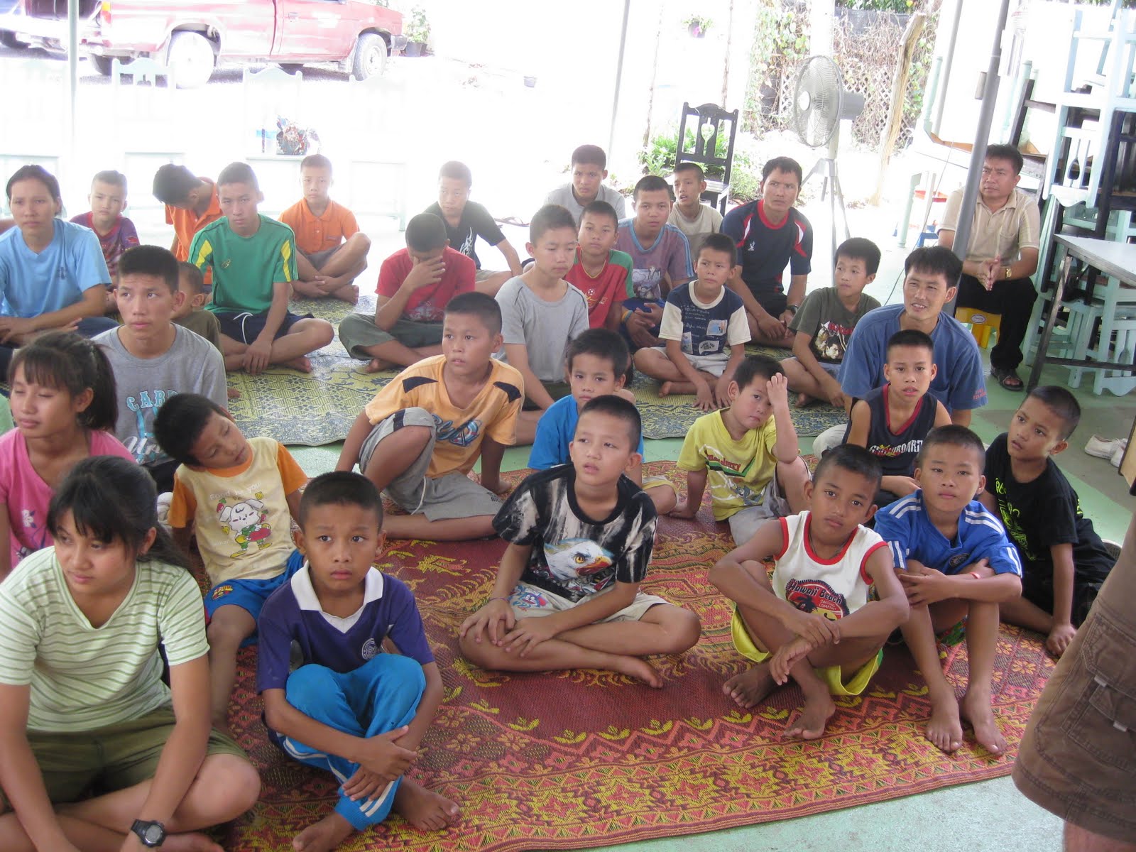 We arrived in Chang Mai a little before midnight Thailand time (which is around noon in VA). We went through customs without a problem. We were the last ones through and Sawyer was smiling at everyone. Thai people love babies so lots of people were waving and smiling at him. At one point he had 4 stewardesses around him talking in Thai or Korean or some other Asia language and he just thought it was great. Tyson and I were joking around that in his mind he was seeing a bunch of grown up Kilan's (his favorite show is Nihou Kilan). The customs officers even helped us with our bags. I think they just wanted to look at Sawyer some more. :-)